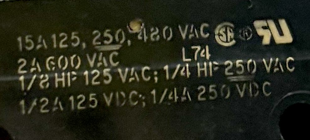 15A = 125, 250, 480 Vac