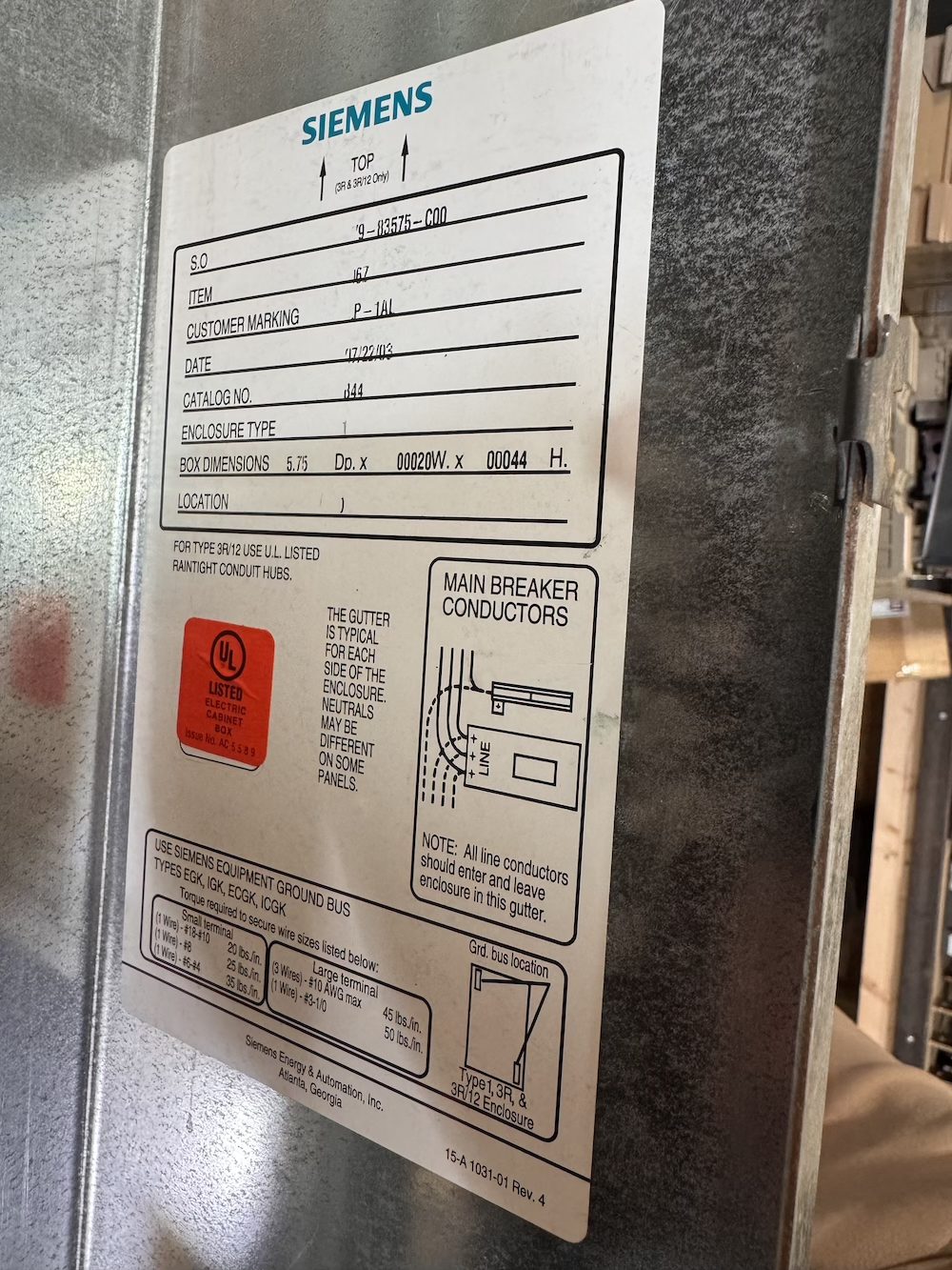 NEMA Type 1 Enclosure – (Indoor)